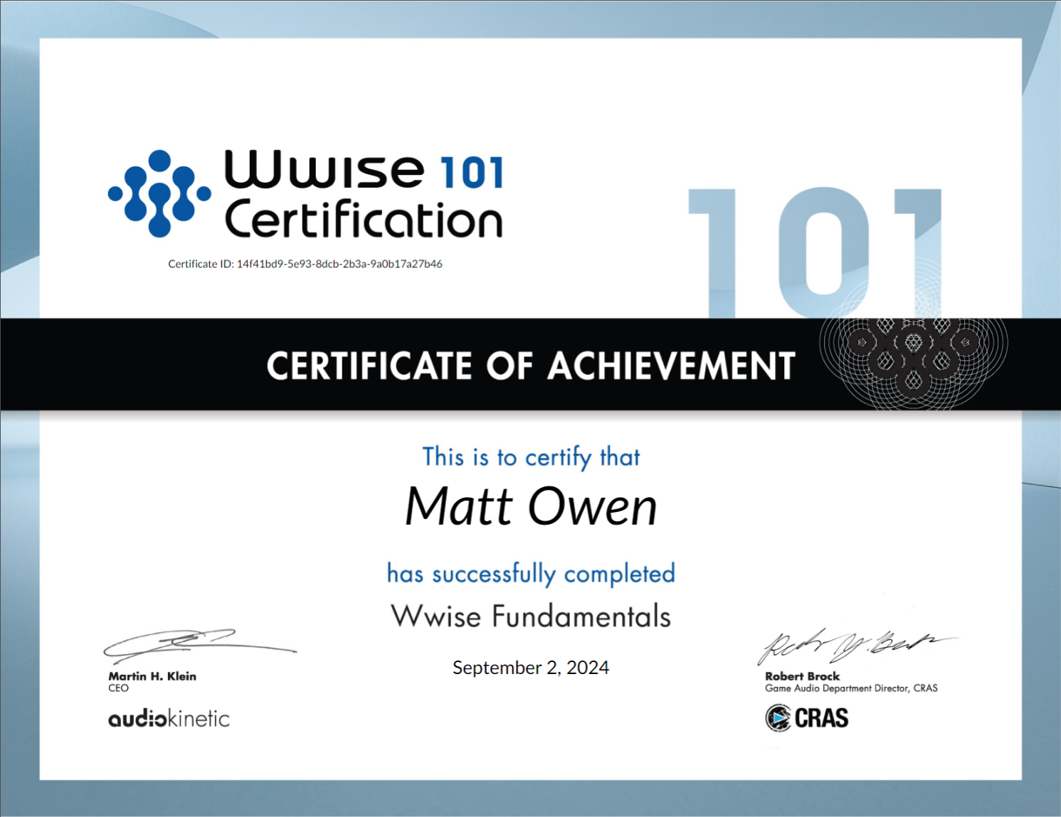 “I have worked with Matthew for two projects, and for both, he has demonstrated a level of professionalism and dedication to the craft that stands far above the rest. He is not afraid to ask the right questions to the right people in order to produce the highest quality product, and is highly adaptable to any creative environment that may present itself. Matthew would make an excellent addition to any sound design or sound production team.”